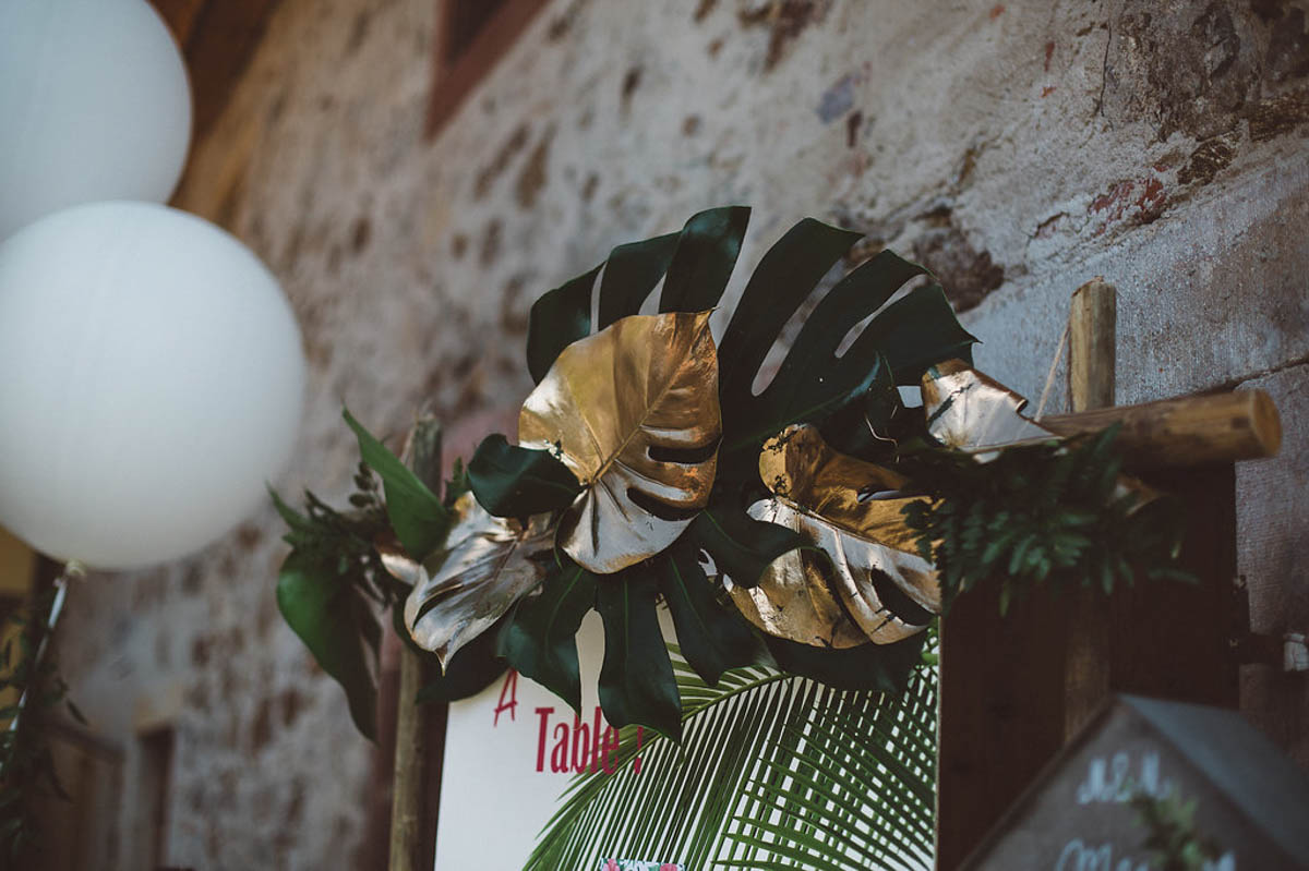 La fleur a été au centre du décor : les fleurs et feuilles exotiques sont tellement belles … impossible de faire l’impasse là-dessus ! Avec Julie, nous avons pris plaisir à travailler ensemble 😉